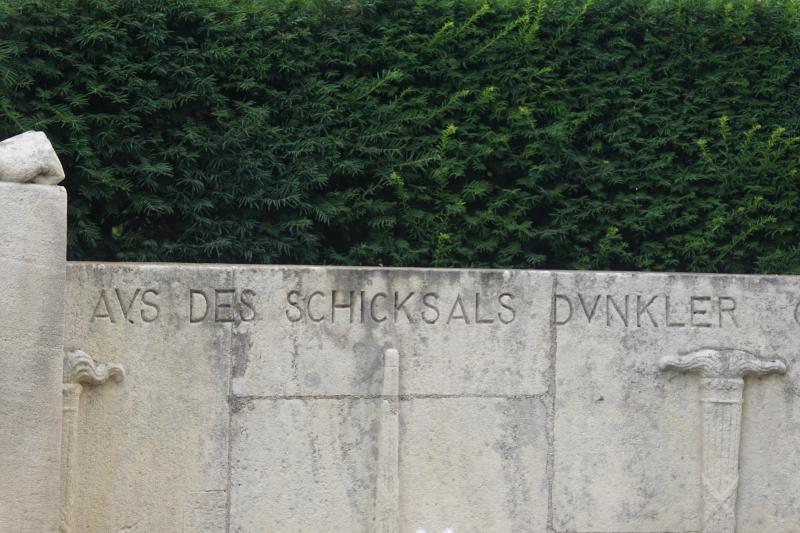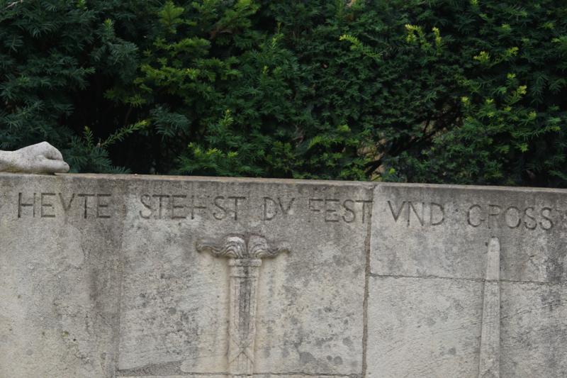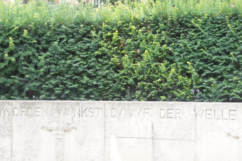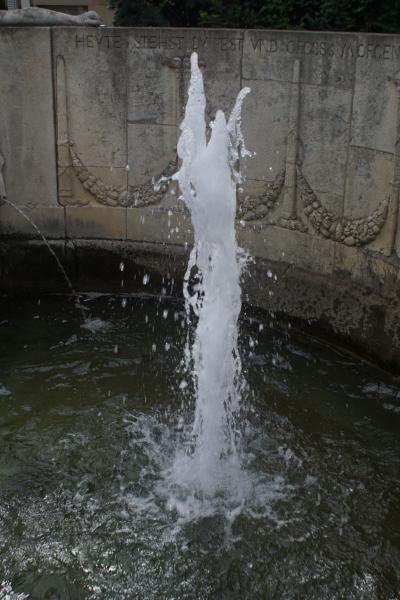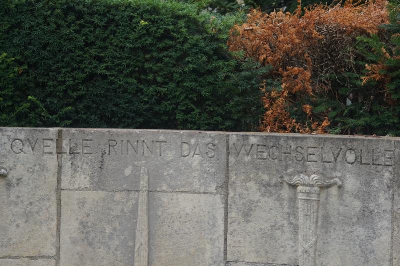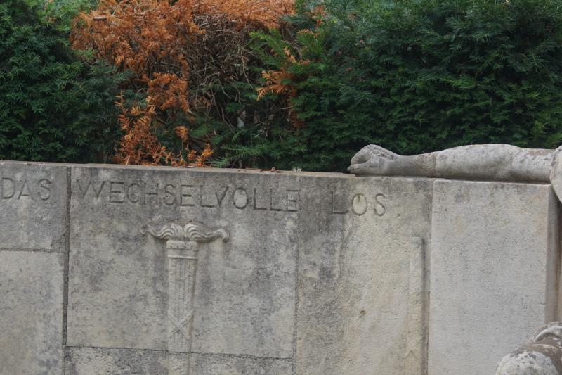 der Schicksalsbrunnen folgende Inschrift: AUS DES SCHICKSALS DUNKLER QUELLE RINNT DAS WECHSELVOLLE LOS HEUTE STEHST DU FEST UND GROSS MORGEN WANKST DU AUF DER WELLE |