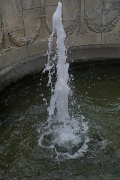 konfrontiert. Der Brunnen ist in einem Halbrund gestaltet, in dessen Mitte