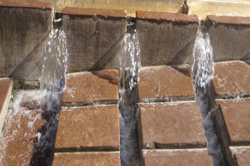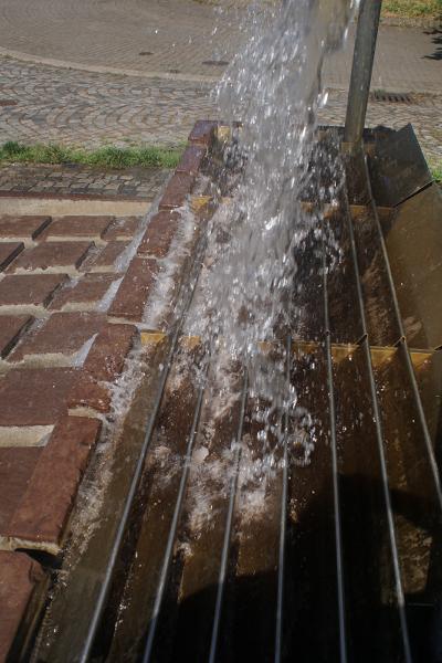 sie in etwa zwei Meter Höhe. Das herabfallende Wasser bildet einen