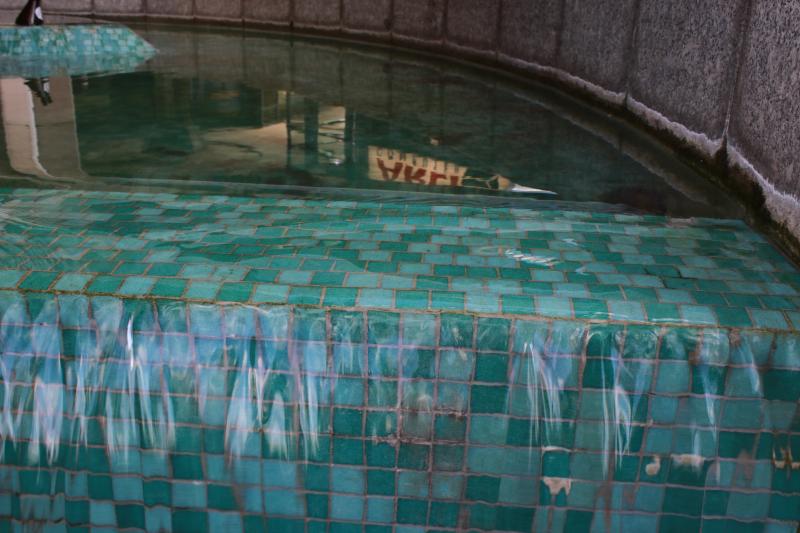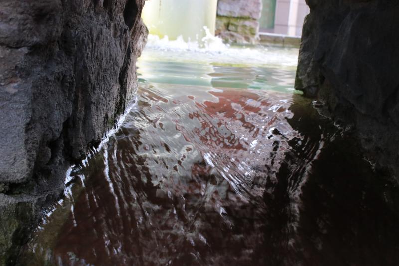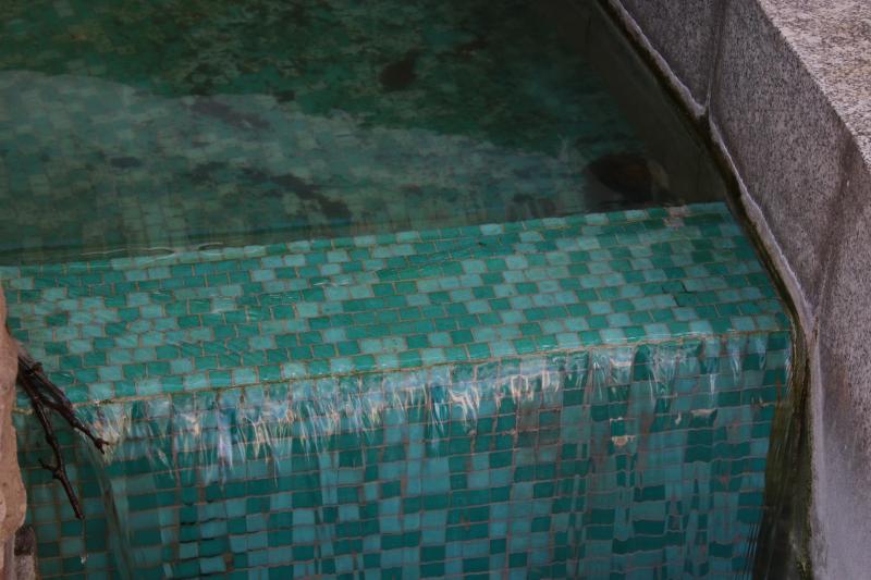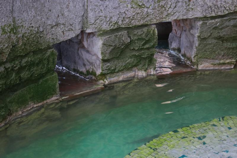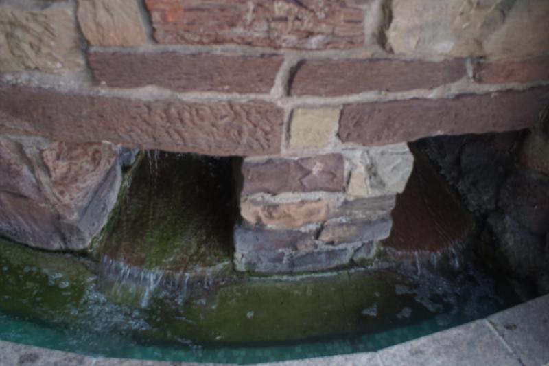 eingebaut, in der das Wasser aufsteigt und in ein rundes Becken mit einem