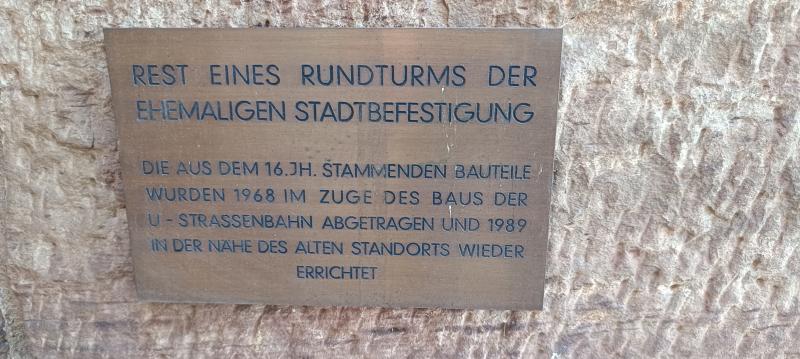 ehemalige Turm aus rotem Sandstein gehörte einst zur Stadtmauer.