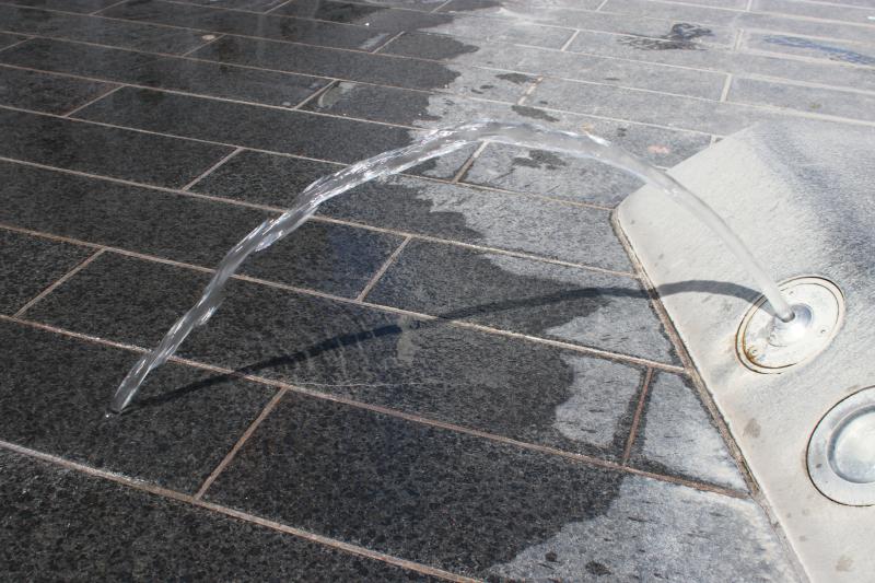 Wasserdüsen am Boden sind teilweise beweglich und das Wasser kann