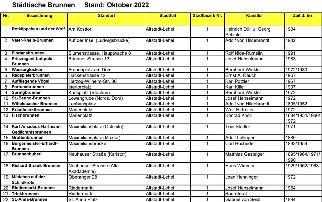 STÄDTISCHEN BRUNNEN IN MÜNCHEN, STAND OKTOBER 2022 |