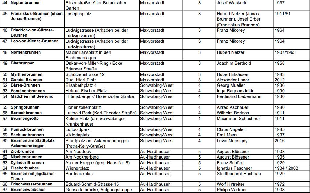 Diese Liste umfasst derzeit 201 Brunnen. Zu jeder Listenseite gibt es