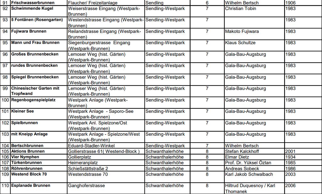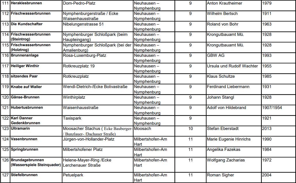 121, 123, 124, 126 und 127 Geplant sind noch: Keine Brunnen aus dieser Listenseite Nicht veröffentlicht werden: Nr. 112, 113, 114, 115, 117, 122 und 125 |
