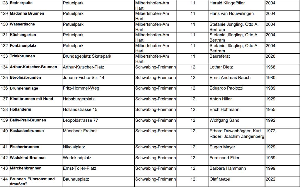 Sammlung befinden sich folgende Brunnen: Nr. 128, 129, 130, 131, 132,