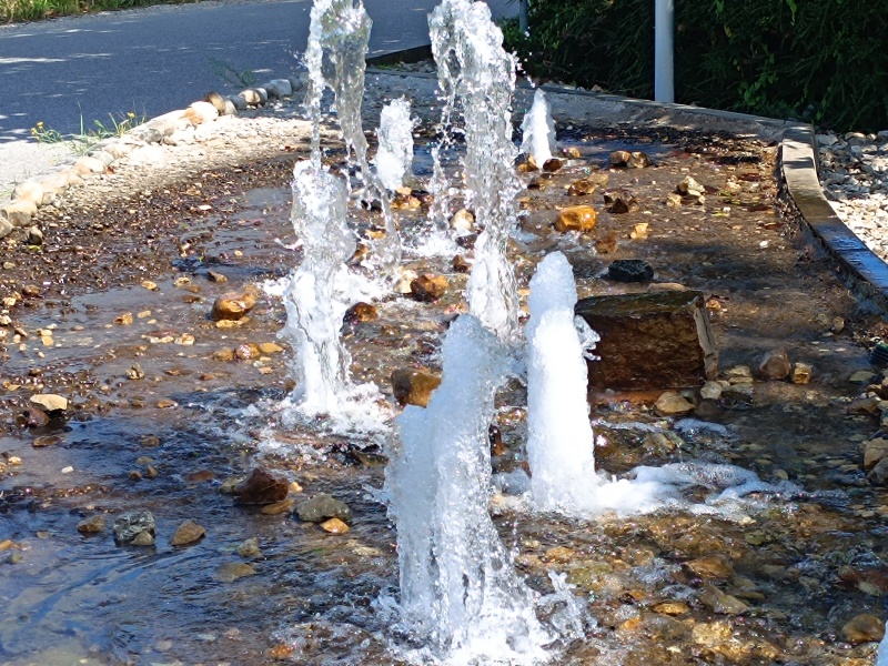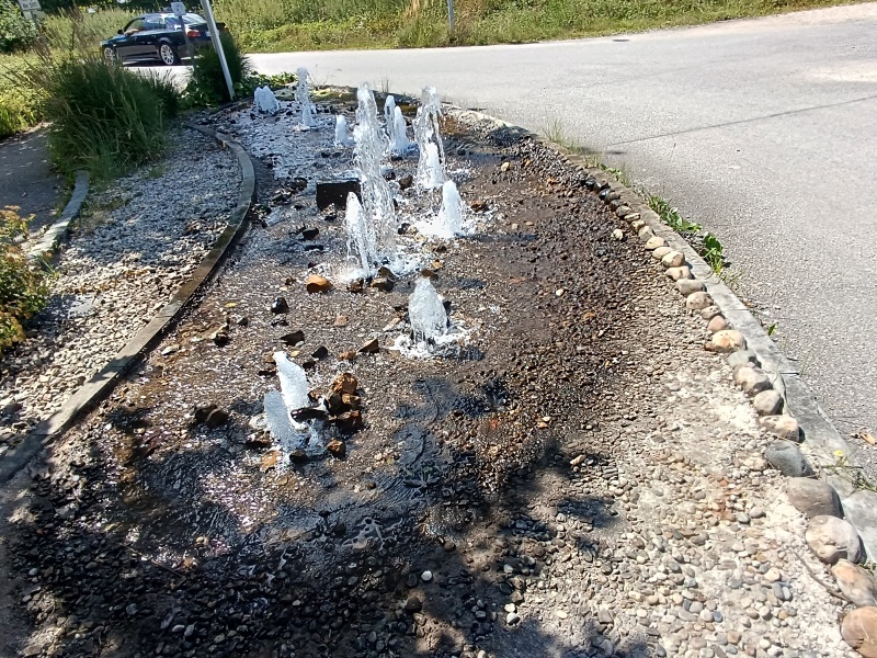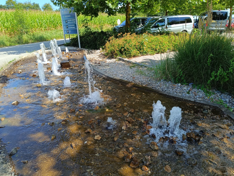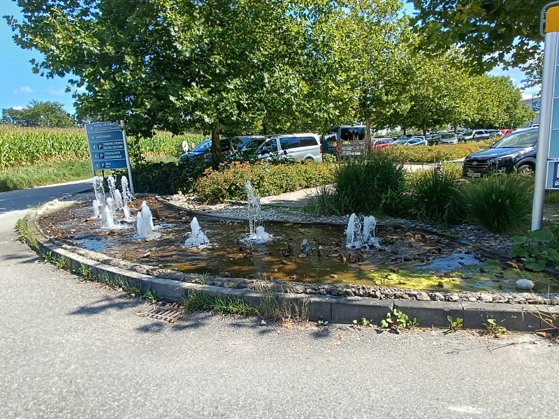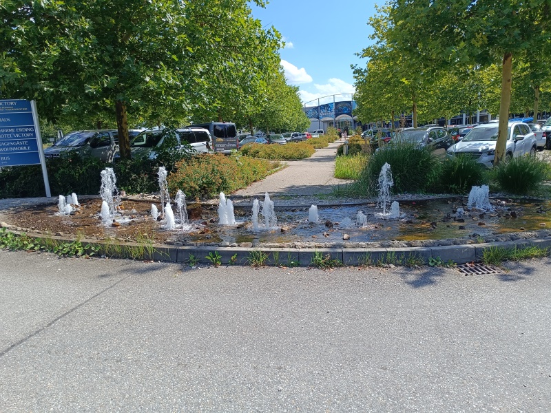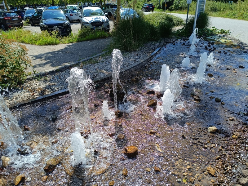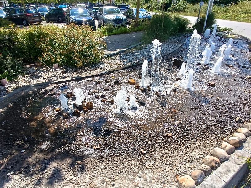 der Zufahrt zum Parkplatz der Therme Erding befindet sich dieses Fontänenfeld. |