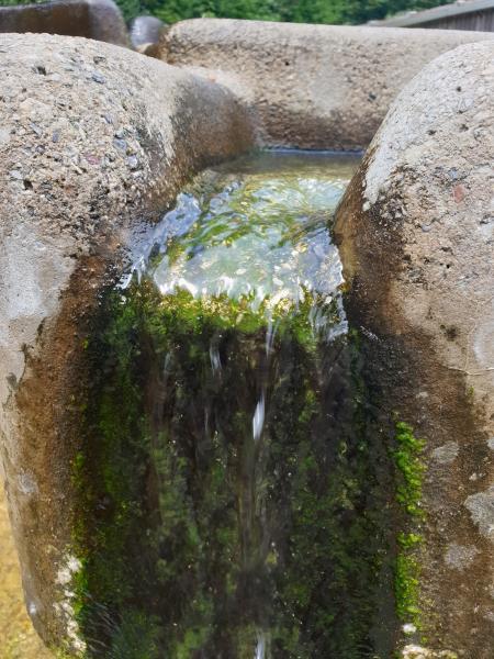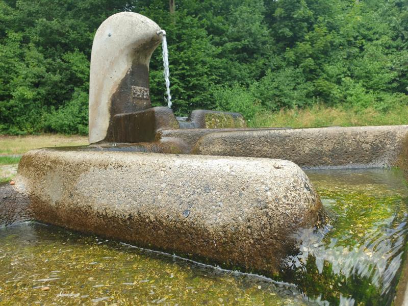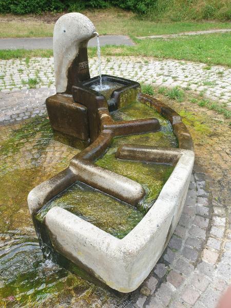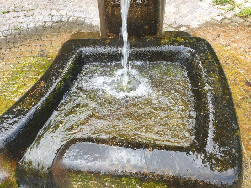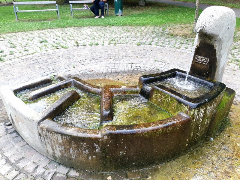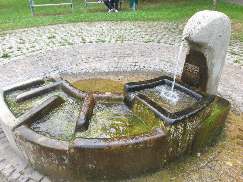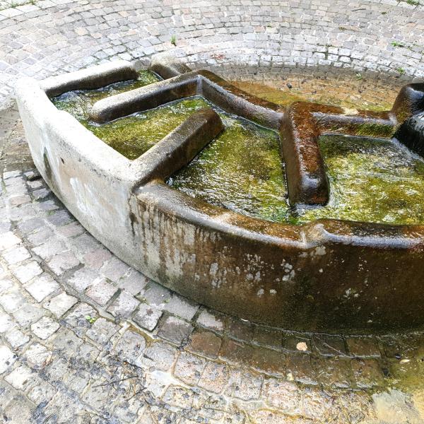 mehrere Stufen in das Bodenbecken. Der Brunnen führt kein Trinkwasser.