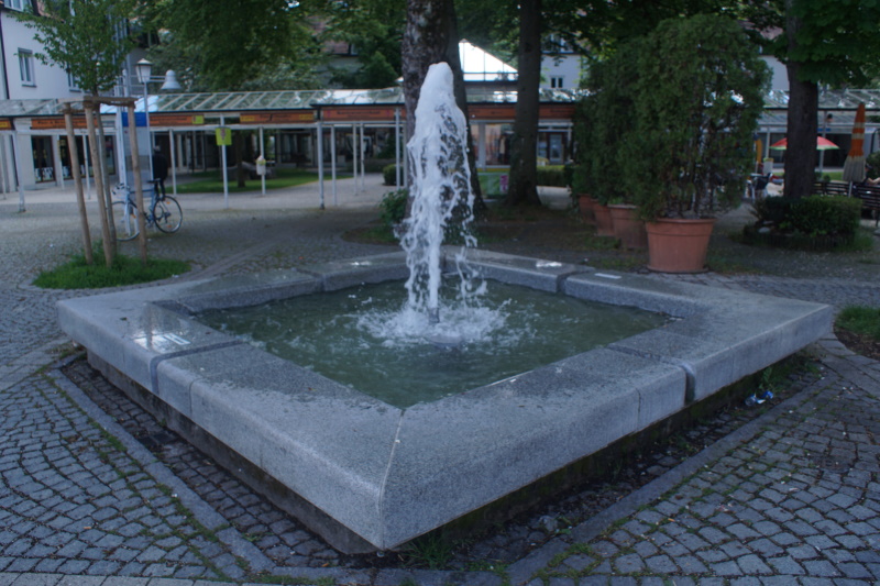 Brunnen aus Marmor mit einer Fontäne in der Mitte befindet sich auf