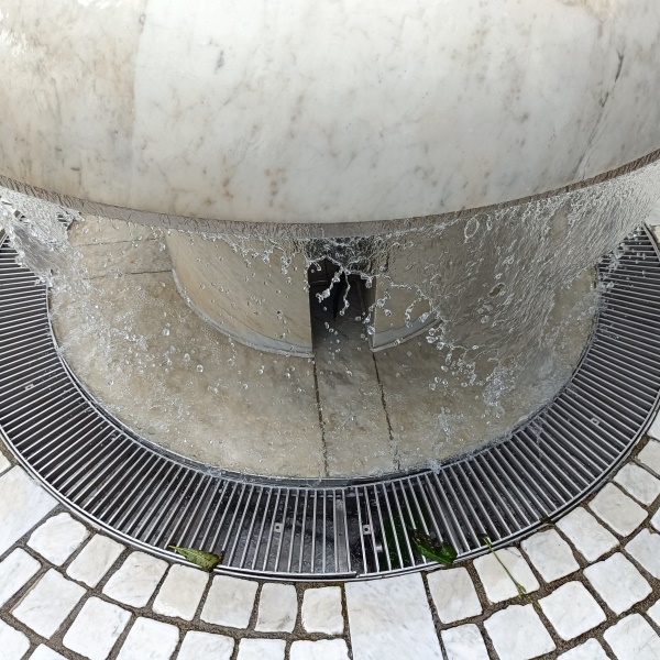 das Wasser über die Rundung ins Becken. |