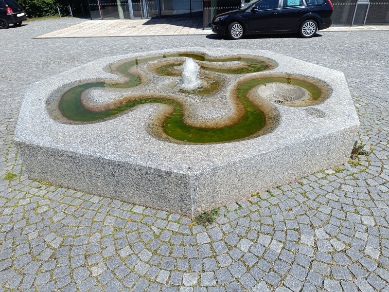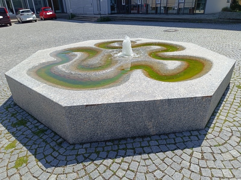 Brunnen befindet sich vor dem Rathaus in Lengdorf. |