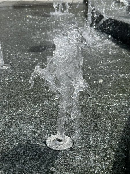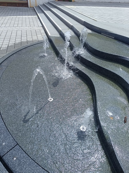 Brunnen mit fünf Bodenfontänen fügt sich sehr schön