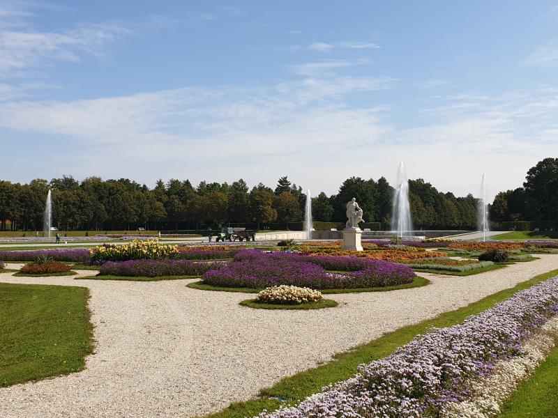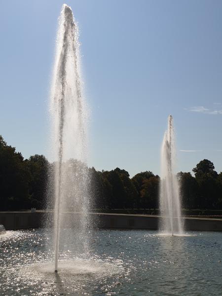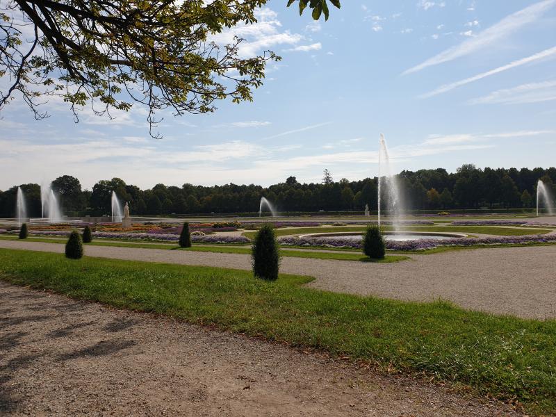 einige Bilder, auf denen mehrere der Fontänen im Schlosspark zu sehen