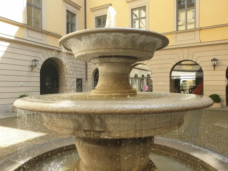 schöne kleine Schalenbrunnen befindet sich im Innenhof der Brienner