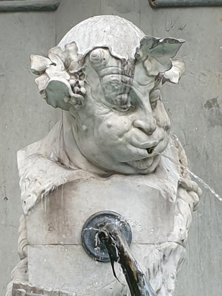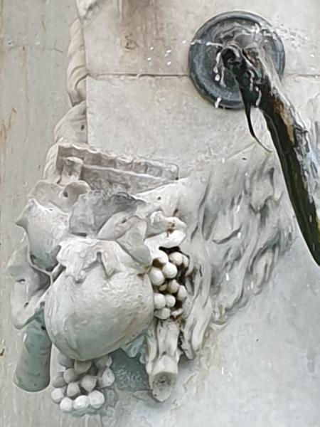 Herme und des Satyrs zu sehen. Die Brunnenwanne wurde aus Enzenauer Kalkstein