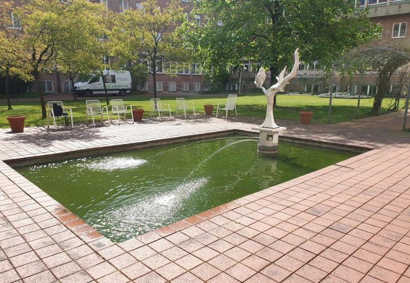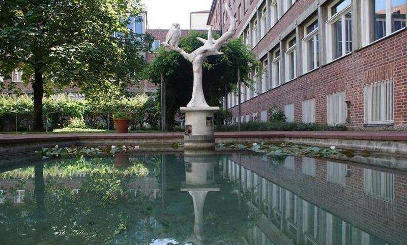 Eulen - Brunnen steht im Hof des Klosters der "Armen Schulschwestern"