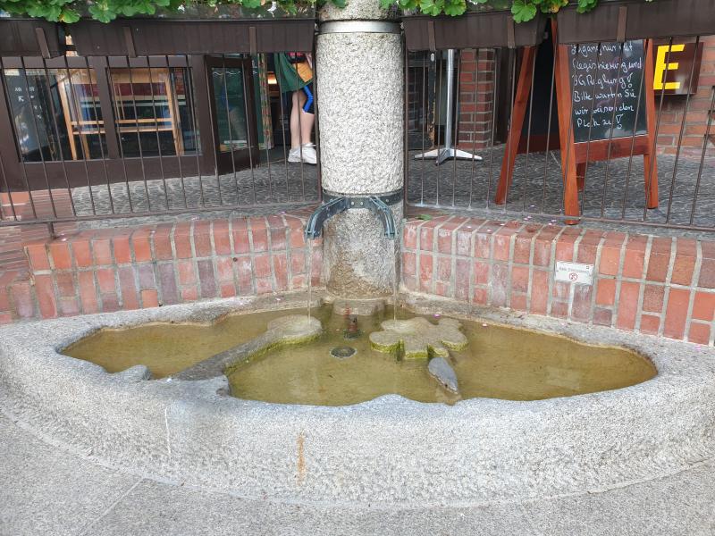 hübsche Brunnen steht im Innenhof der Löwenpassage vor dem Cafe