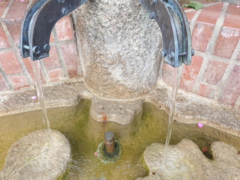 von Manfred Mayerle und Andreas Sobeck entworfen und am 22.10.1977 eingeweiht. Ausführung des terrassenförmig angelegten Brunnens und der Säule in Flossenbürger Granit durch den Steinmetzbetrieb Martin Feicht, München. Hier handelt es sich um einen privaten Brunnen. |