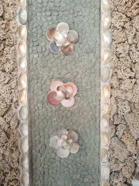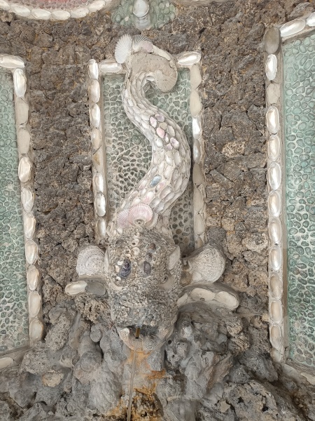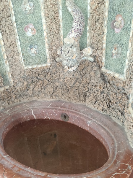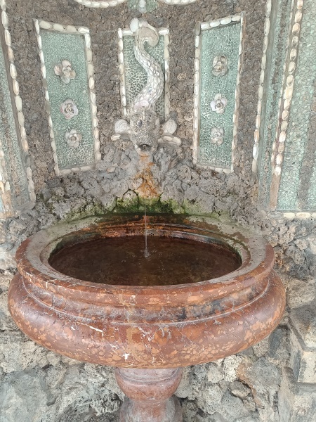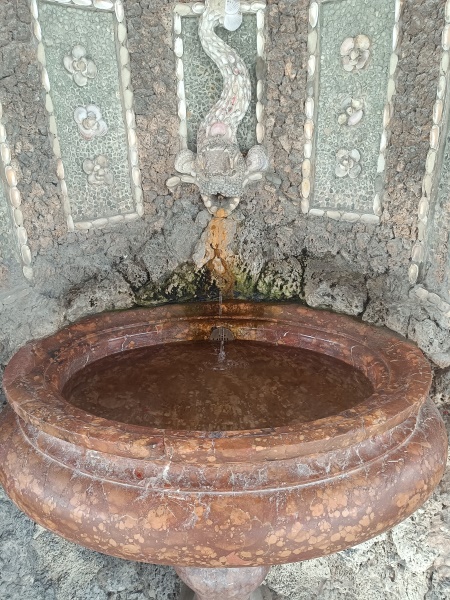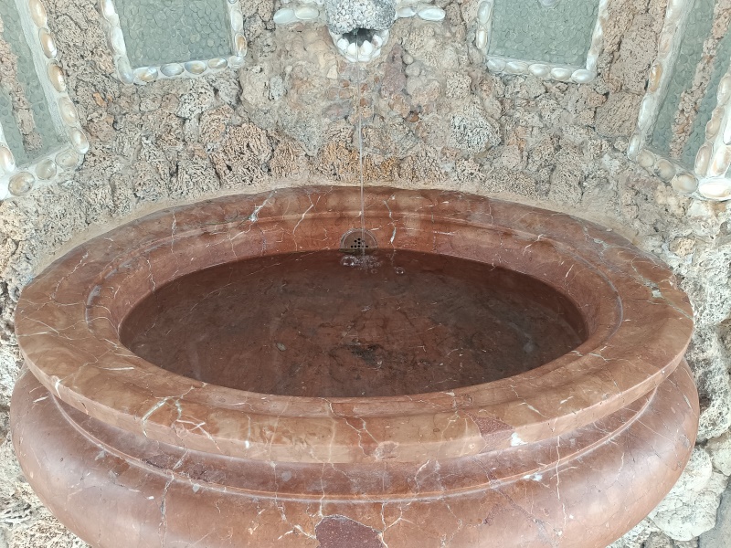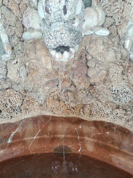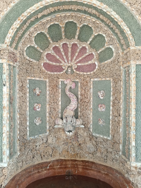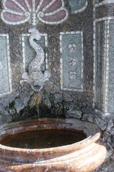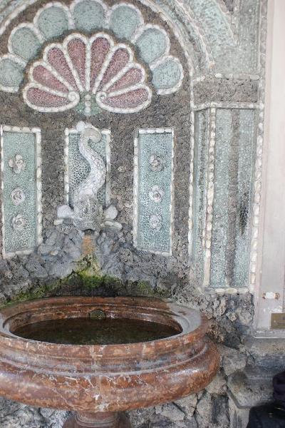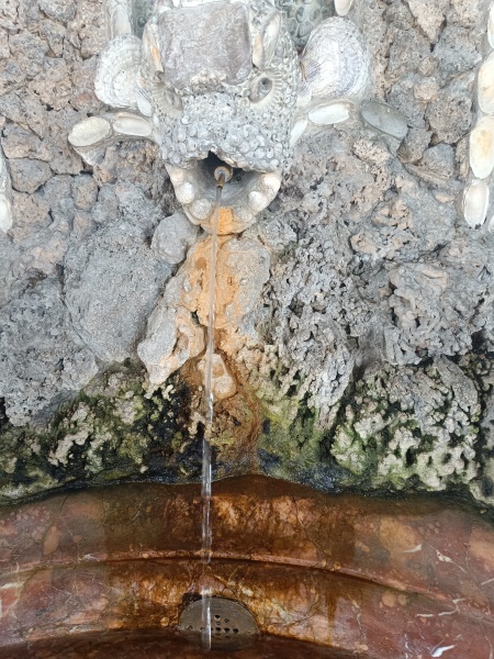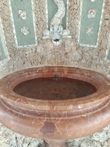 und mit Marmor verkleidete dekorative Wandgrottenbrunnen mit je einer