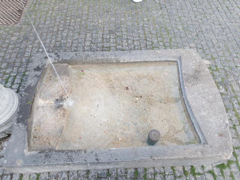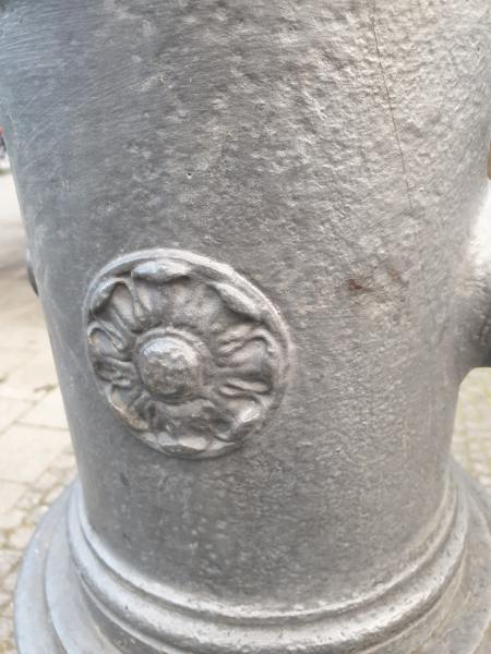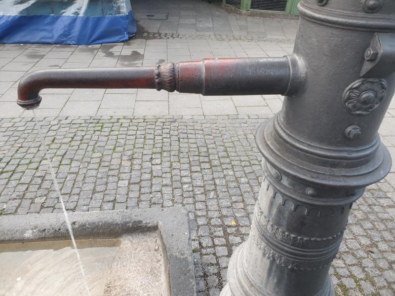 Flachstahl ausgetauscht. Diese Beschriftung ist daher leider verloren. Bei diesem Brunnen handelt es sich um einen - Trinkwasser führenden - städtischen Brunnen. |