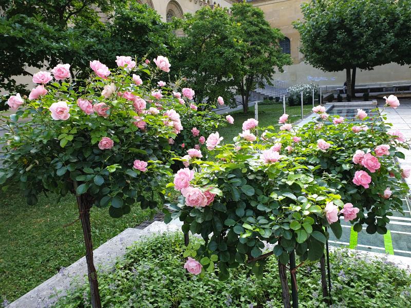 Stab - Leuchten mit den Kübelpflanzen sowie die an ihnen vorbei flanierenden