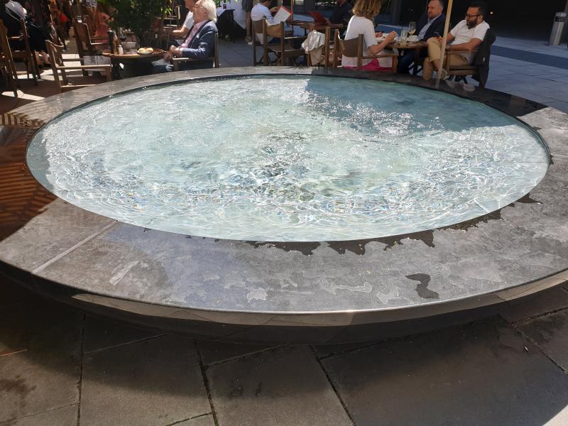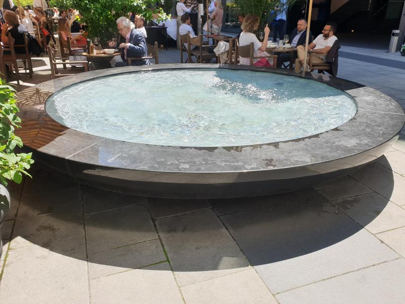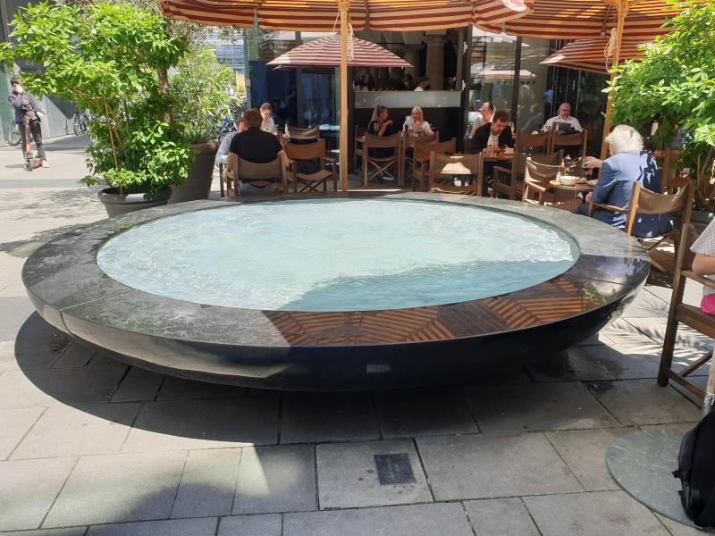 noch in einem Innenhof. Optisch sieht es aus, als würde das Wasser