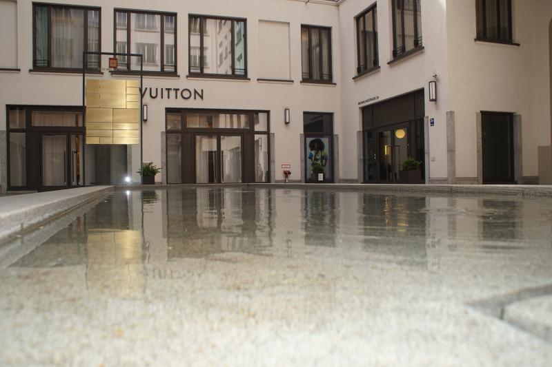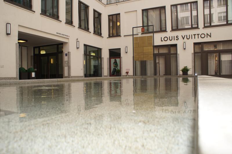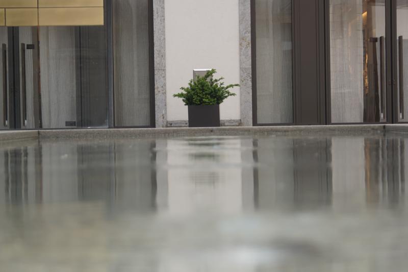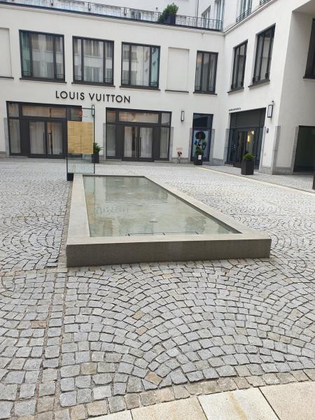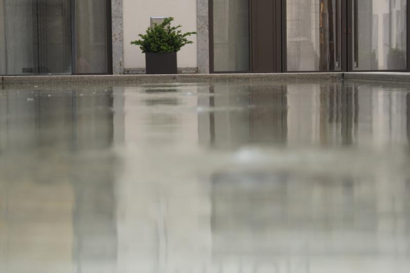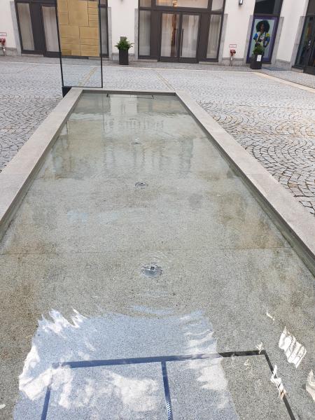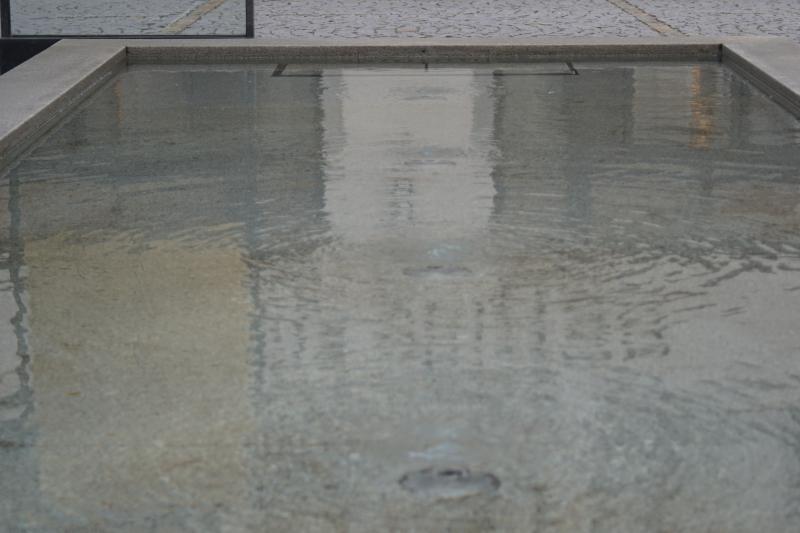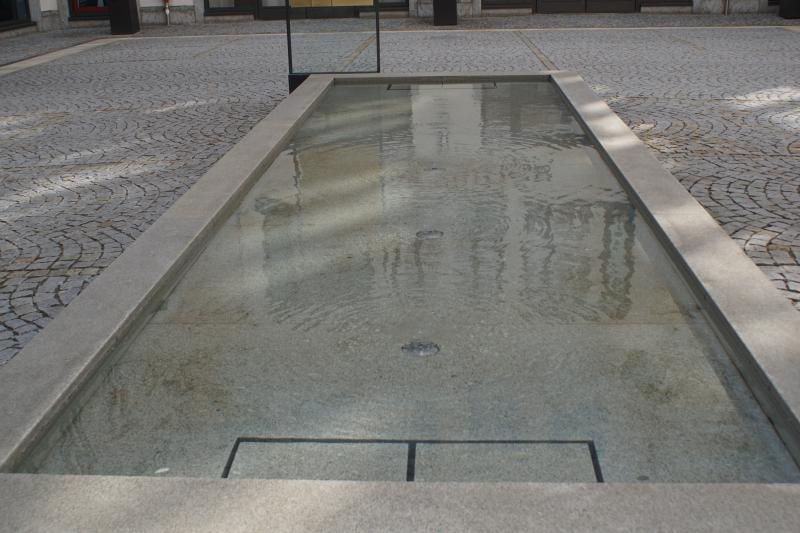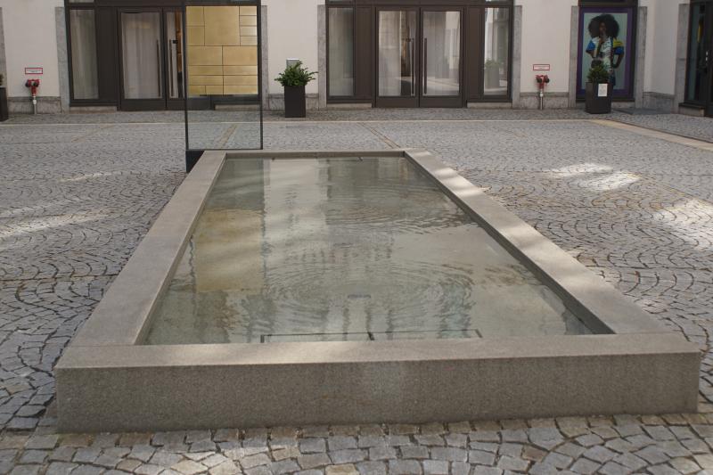 01 - Altstadt - Lehel. Ein Wasserbecken, bei dem das Wasser von unten