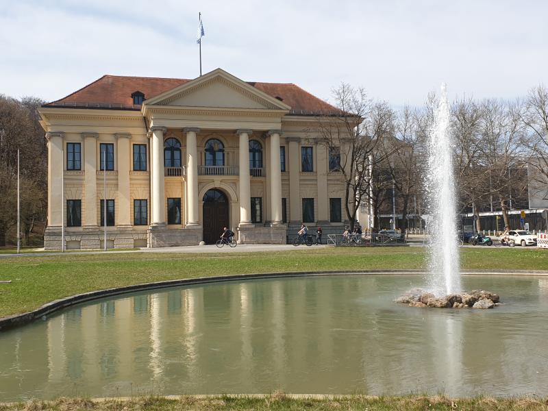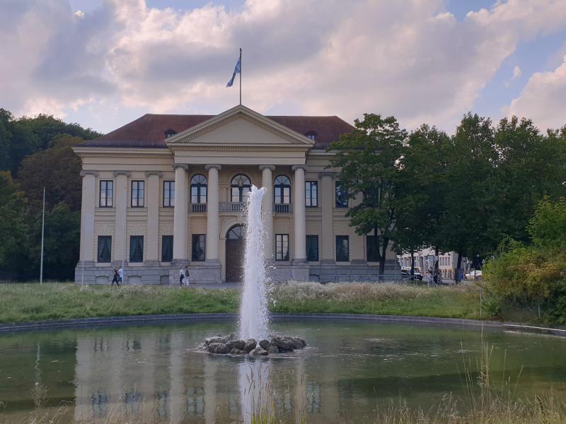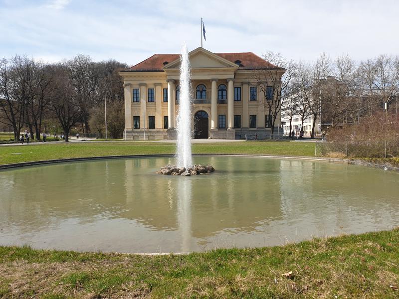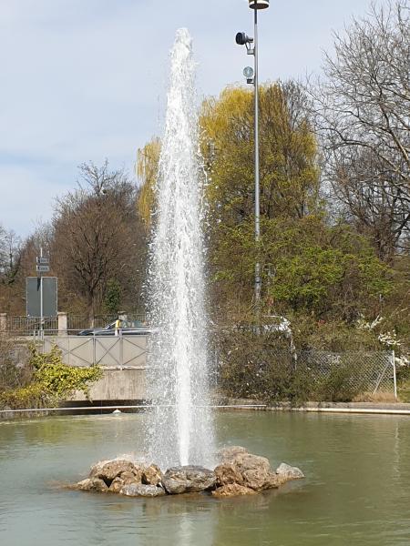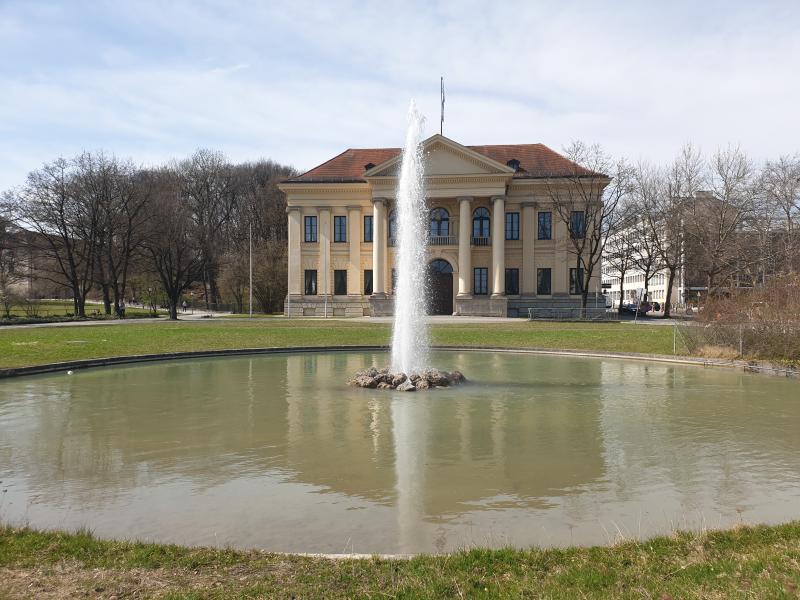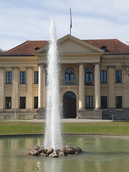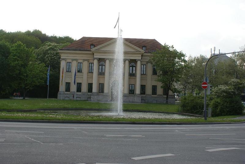 etwa 10 Meter hohe Fontäne kann man vor dem Prinz Carl Palais im