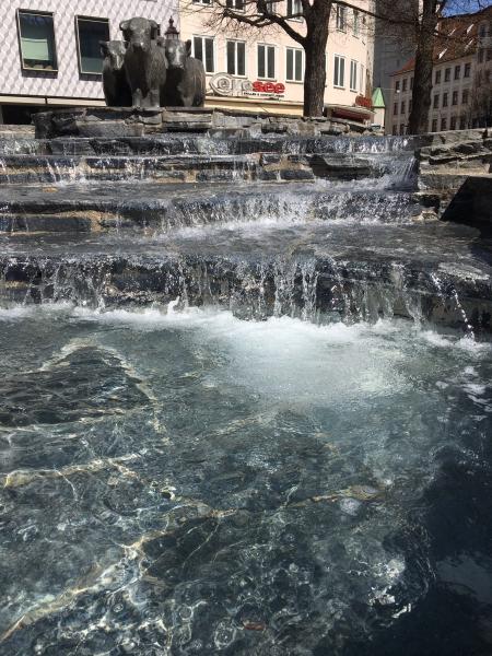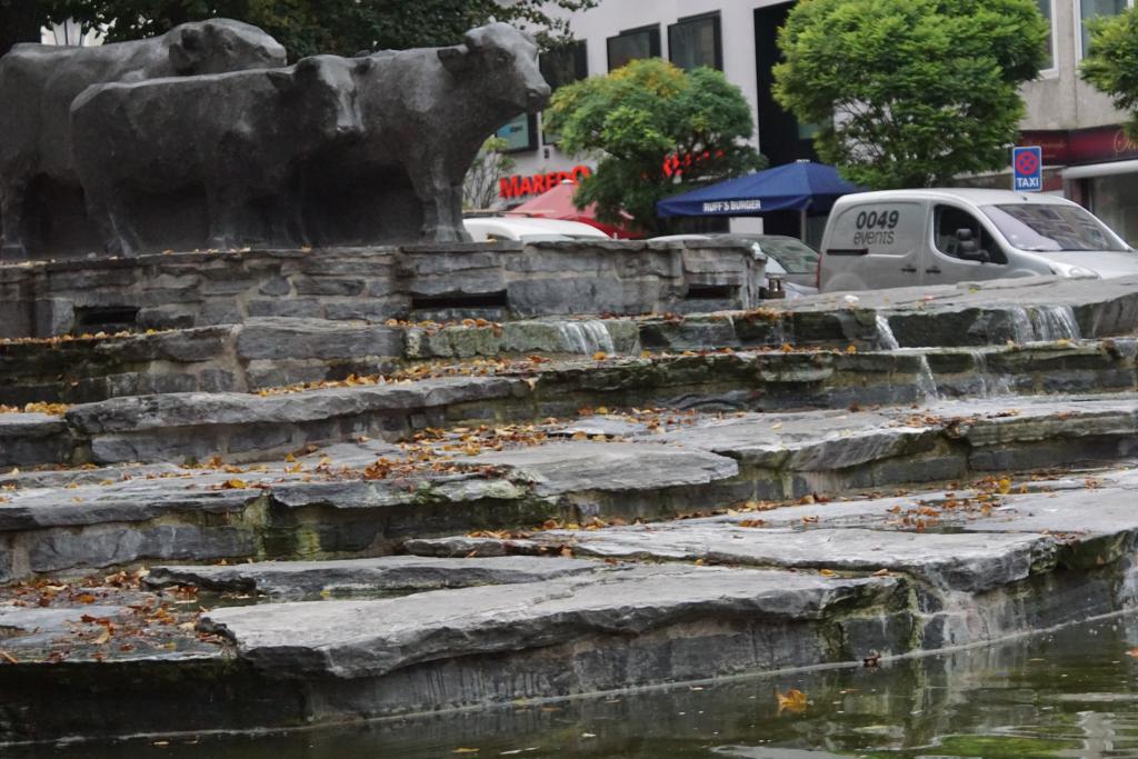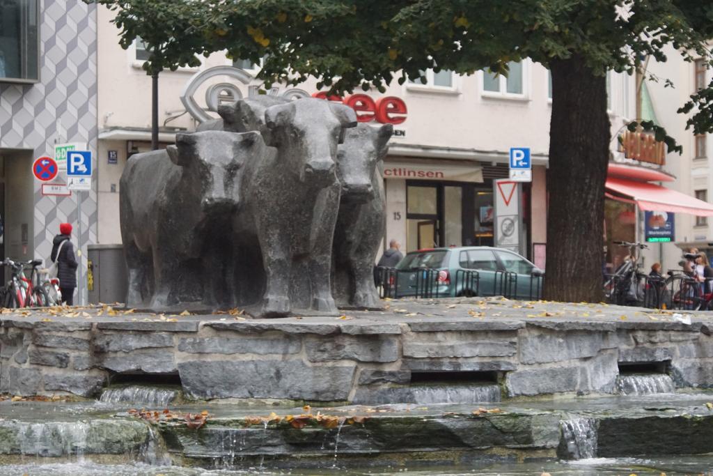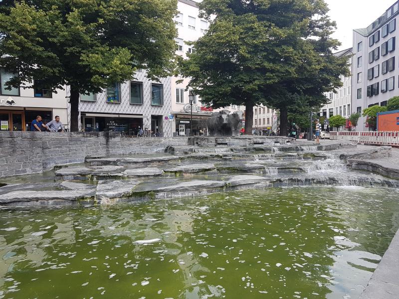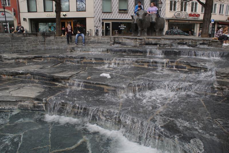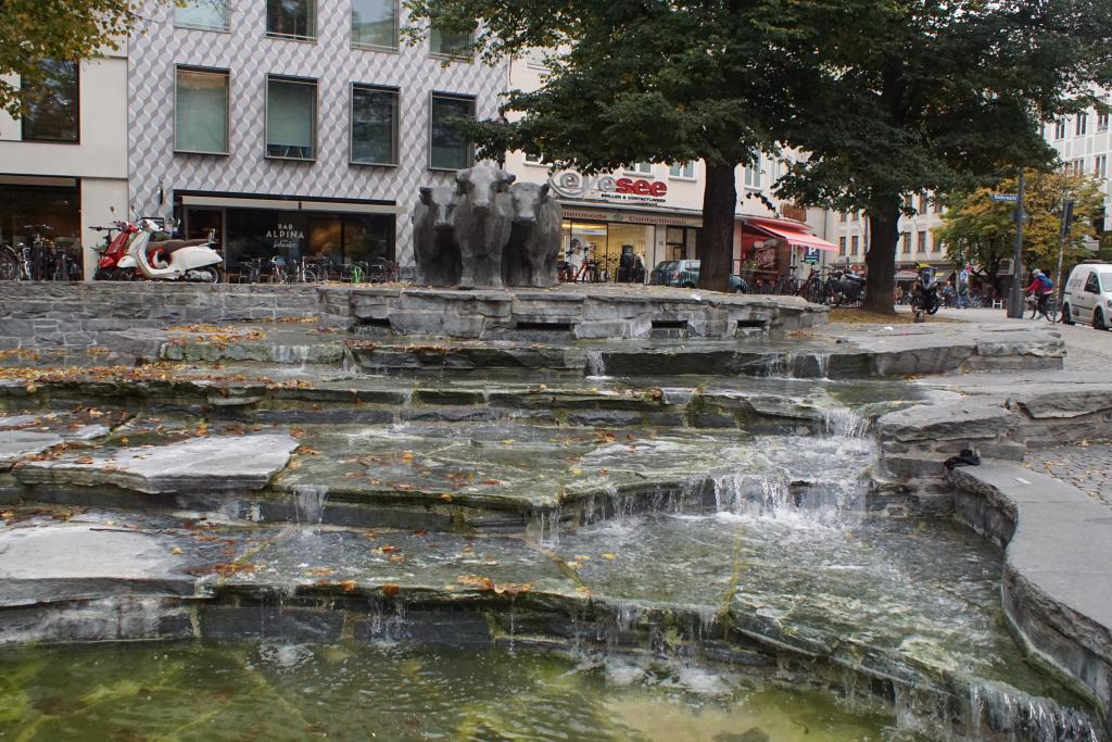 Rindermarktbrunnen ist eine moderne Brunnenanlage in der historischen