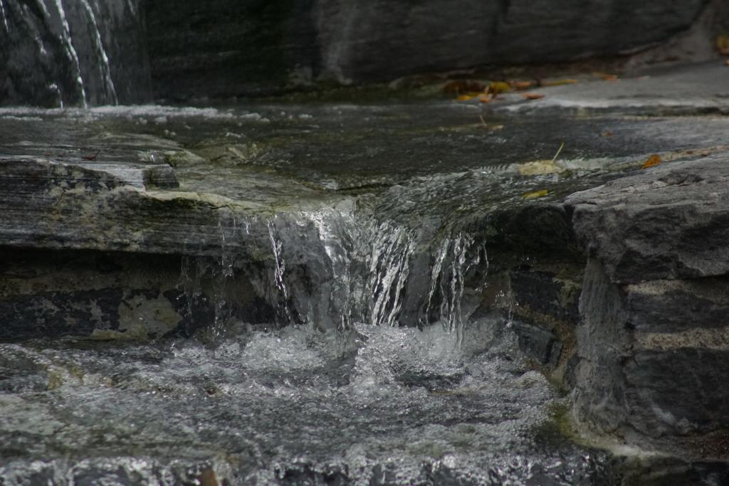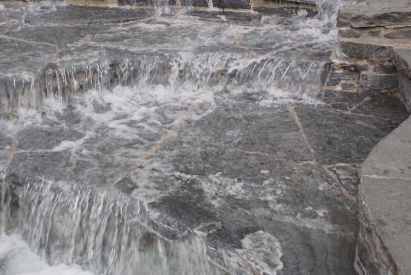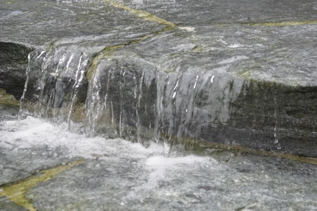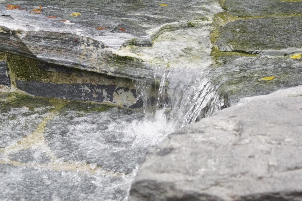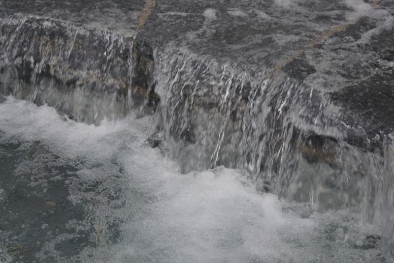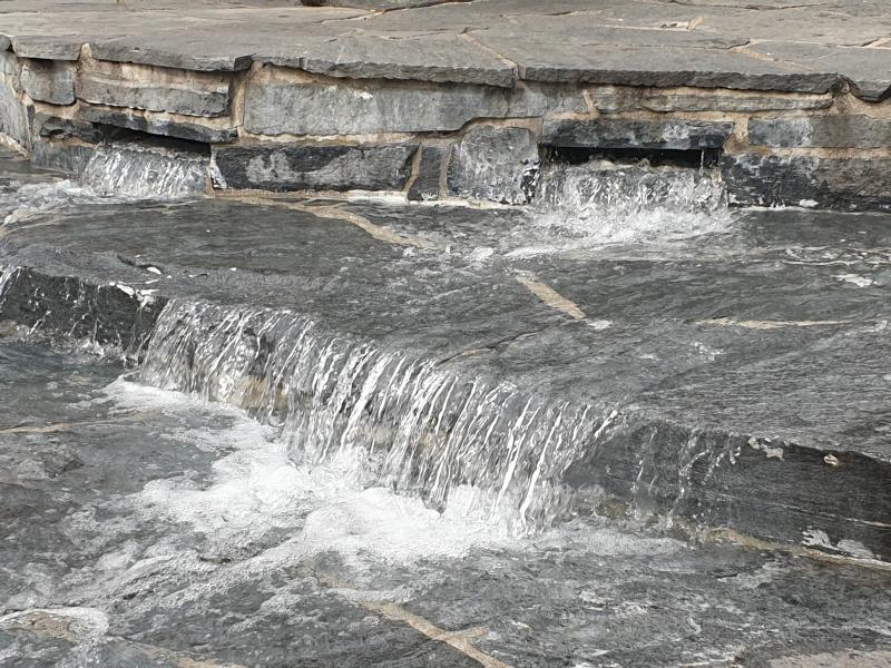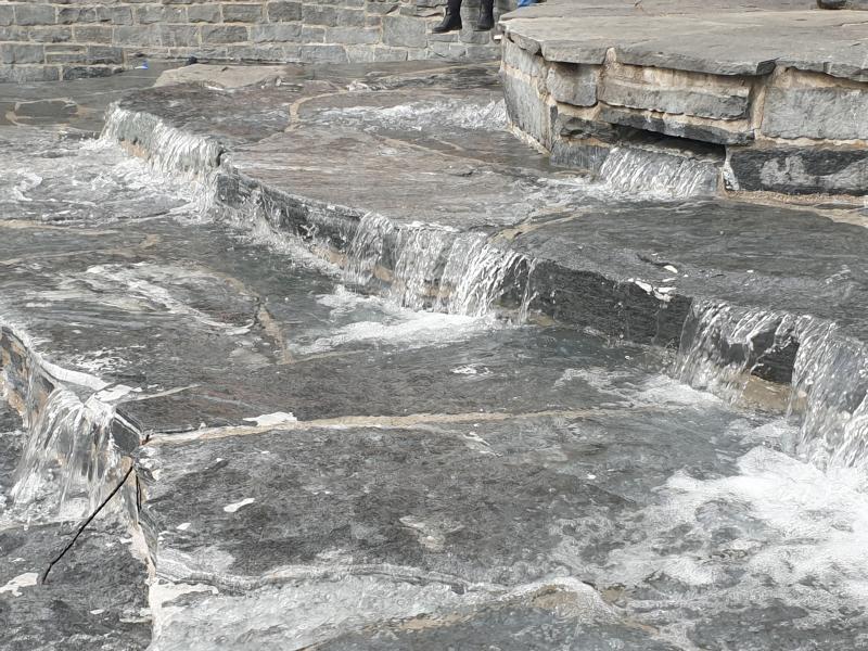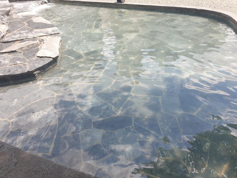 natürlichen Wasserlache. Oberhalb der Treppenstufen wird der Brunnen