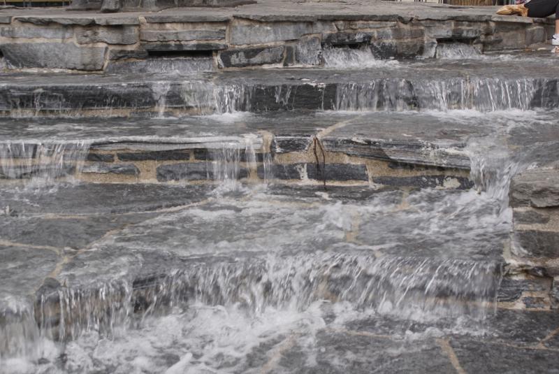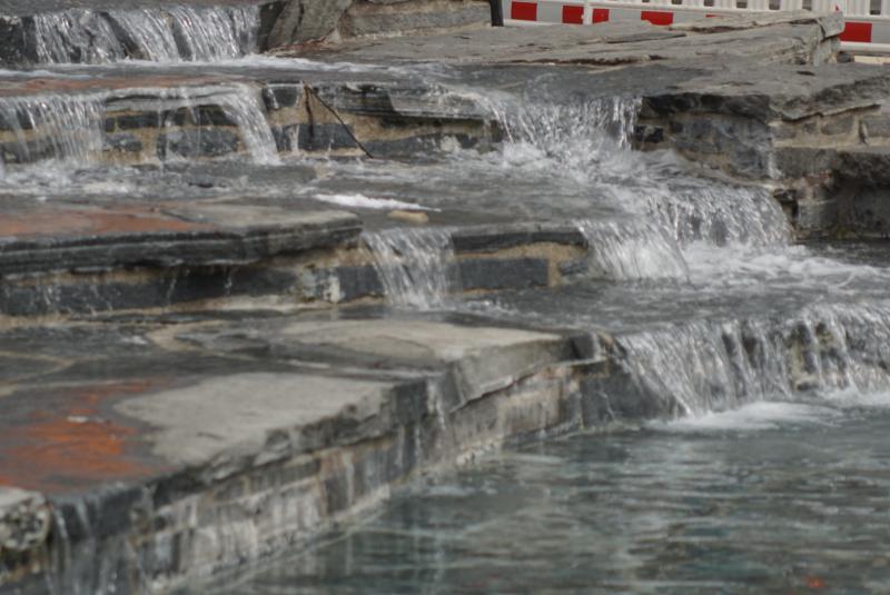 geformte Brunnenbecken im Zentrum der Anlage imitiert dabei die Idee einer