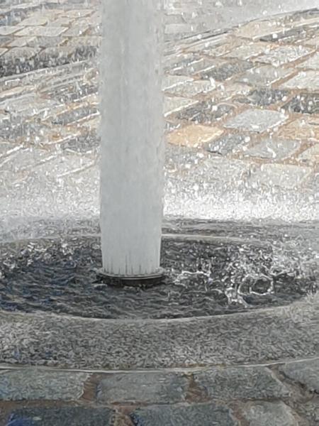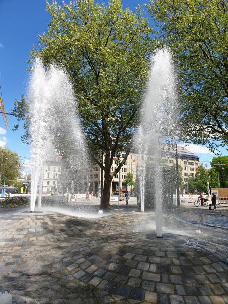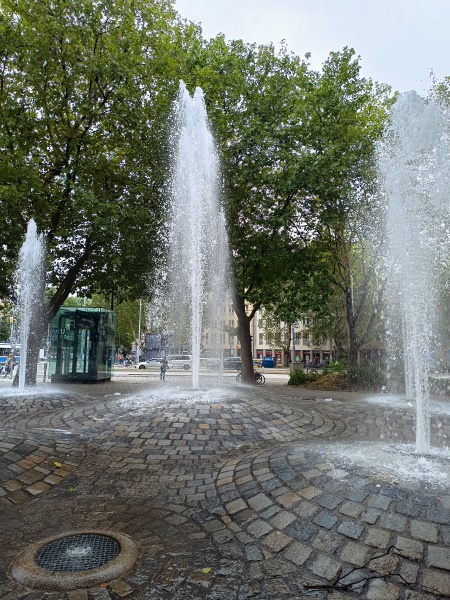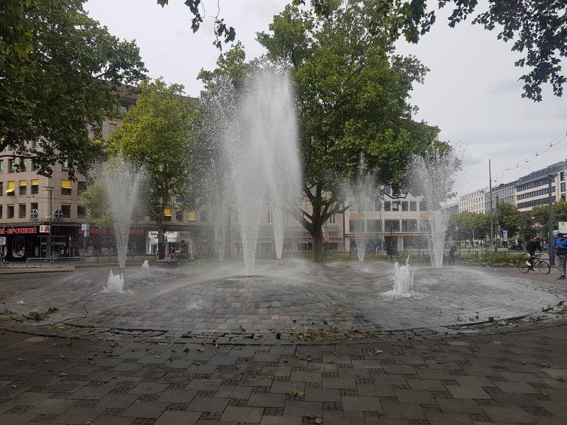 sechs Fontänen angeordnet, deren Wasser bis zu 3,50 Meter hoch sprudelt.