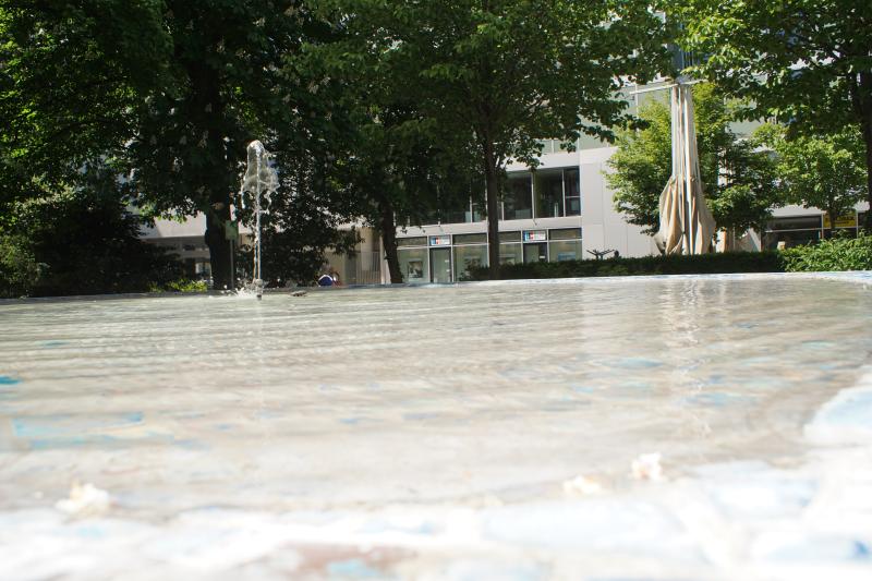 quadratische Brunnen befindet sich im Innenhof der Sonnenstraße