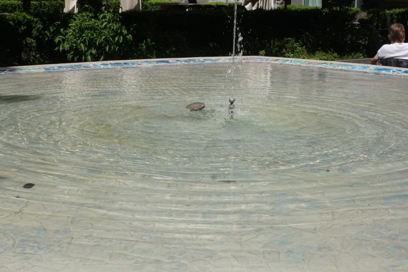 Alfred Reich (1908 - 1970) entworfen. Das Becken aus Beton ist mit Keramikplatten