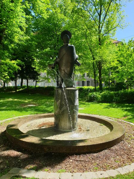 im Stadtbezirk 01 - Altstadt - Lehel. Erbaut wurde der Floriansbrunnen 1991 vom Förderverein Floriansbrunnen München 1991 e.V. Der Brunnen wurde anlässlich des 125jährigen Jubiläums der Freiwilligen Feuerwehr München erstellt, da bis zu diesem Zeitpunkt keine einzige Einrichtung zu Ehren des "Heiligen Florian", u.a. der Schutzpatron für die Feuerwehrleute, in München bestand. Der Brunnen wurde 1991 von Rolf Nida - Rümelin gestaltet. An dem Brunnen kann man die Widmung "125 Jahre Freiwillige Feuerwehr München 1866 - 1991" lesen. Figur und Säule sind aus Bronzeguss, das Becken besteht aus Naturstein. Dieser Brunnen ist ein Frischwasserbrunnen. Das Wasser fließt aus einem Kübel in der rechten Hand der Figur in das runde Steinbecken. Die gesamte Anlage ist etwa 4 Meter hoch. Es handelt sich hier um einen städtischen Brunnen. Die Hauptfeuerwache beherbergt auch das größte Feuerwehrmuseum Deutschlands. Eine Berufsfeuerwehr wurde 1879 ins Leben berufen und zu deren 100. Geburtstag wurde das Museum in der Hauptfeuerwache eröffnet. Die Ausstellung umfasst ca. 6000 Ausstellungsstücke, vorwiegend Geräte und Dokumente zum Münchner Feuerschutzwesen. Modernes und altes Löschgerät, Luftschutzkeller, die erste Drehleiter von 1802 und vieles mehr. |