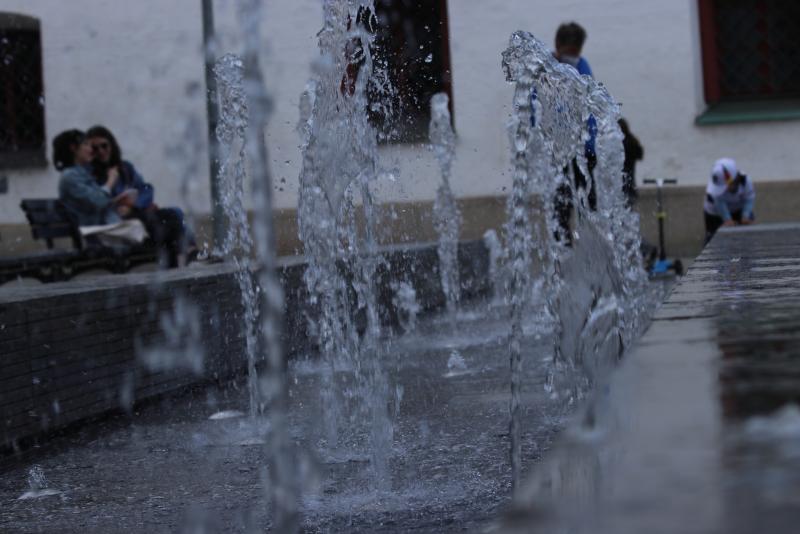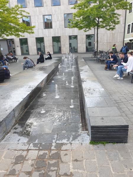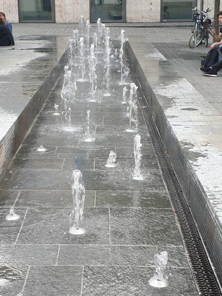 langgestreckte Fontänenbrunnen wurde im Zuge der Neugestaltung des