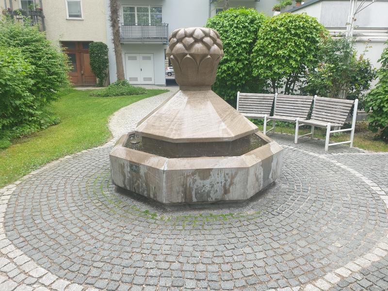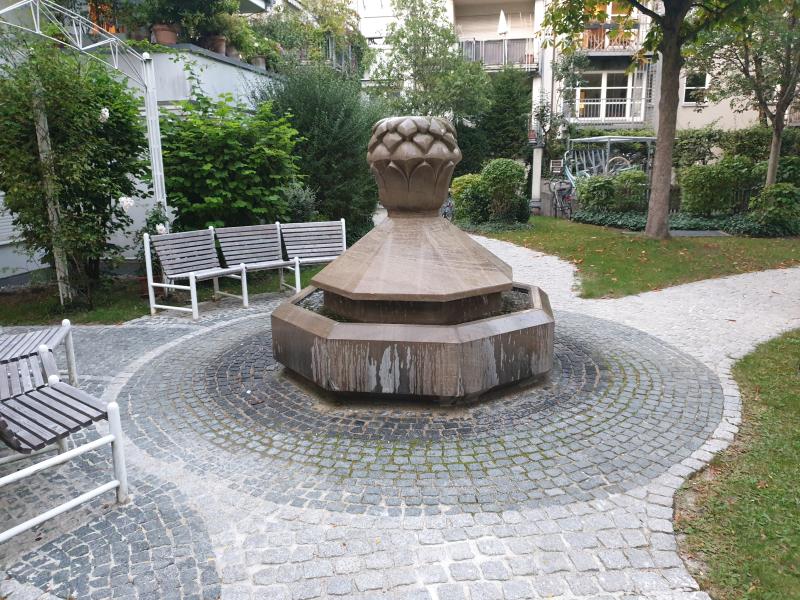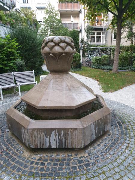 schöne kleine Brunnen befindet sich in einem Hinterhof in der Aventinstraße