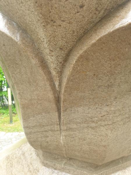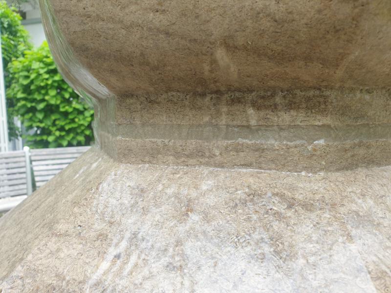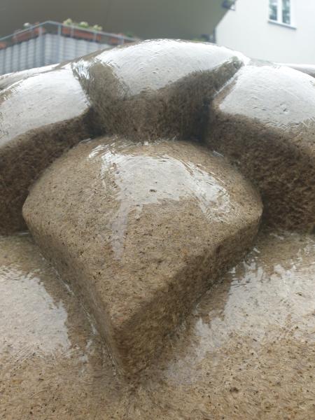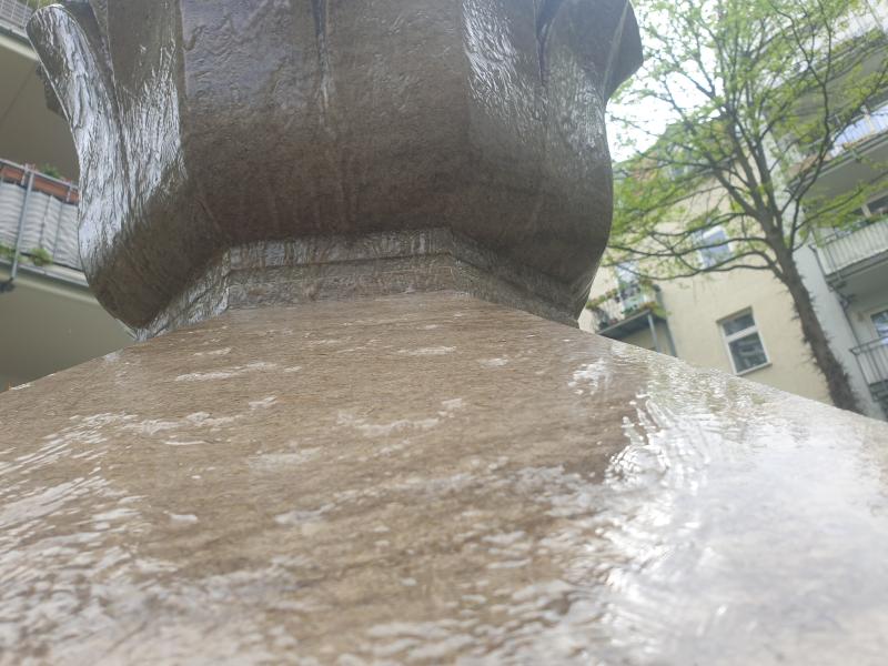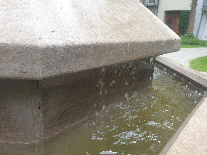 um einen privaten Brunnen. Auf einem Schild am Brunnensockel kann man