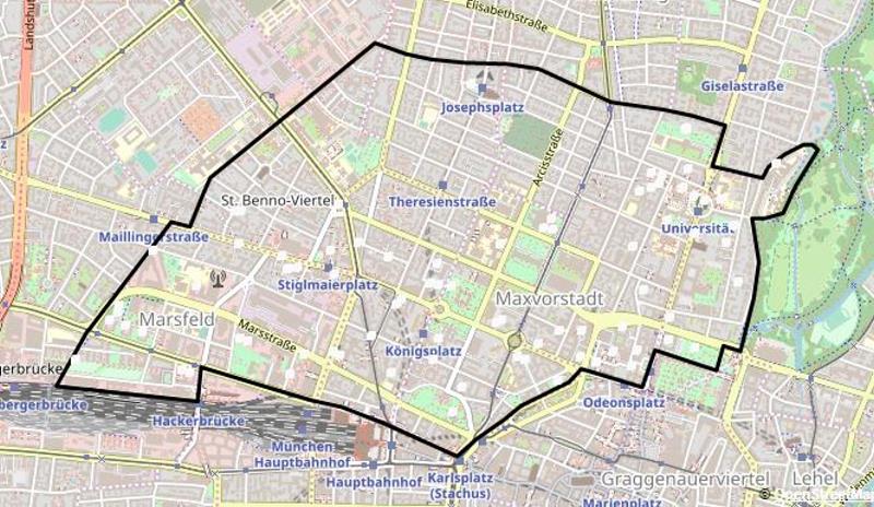umrandete Bereich auf der Karte zeigt den Stadtbezirk 03 - Maxvorstadt |