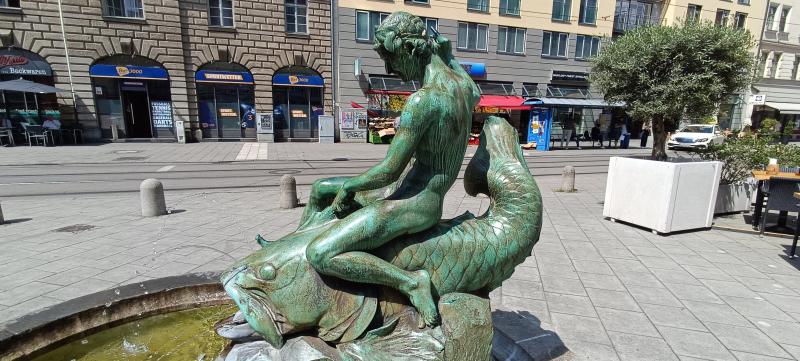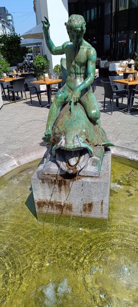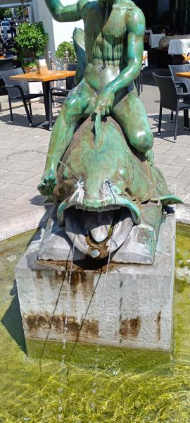 aufgestellt. Naja, wie ein Delphin sieht der Fisch, auf dem die Figur