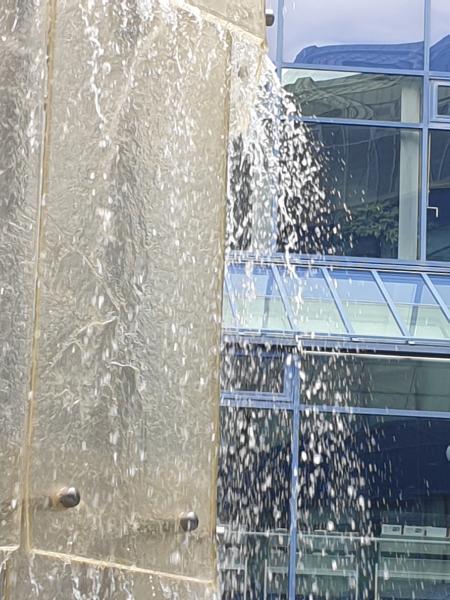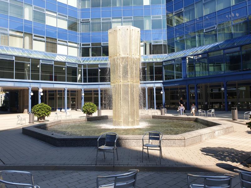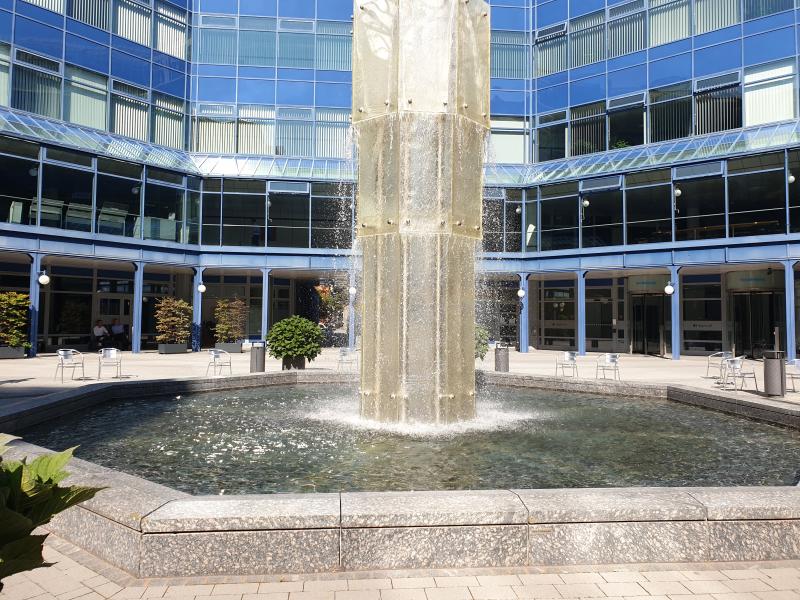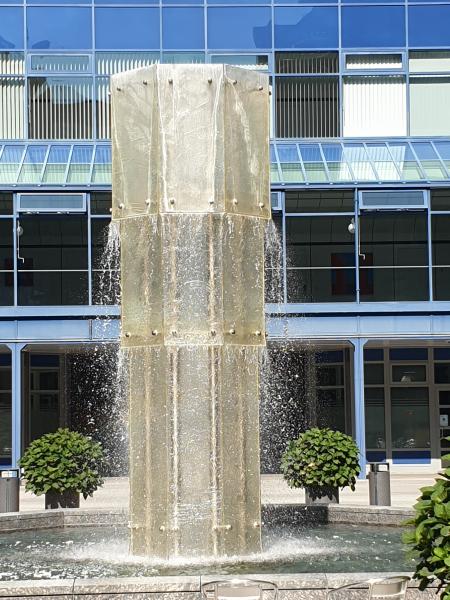 wunderschön plätschernde Brunnen ("Glasbrunnen") befindet