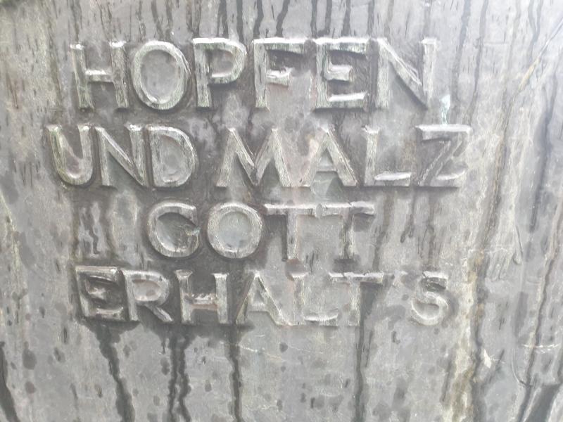 Brunnen steht der Spruch "Hopfen und Malz Gott erhalts", sowie