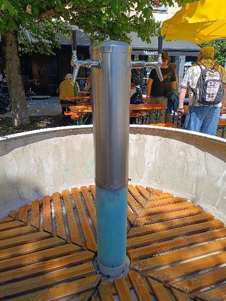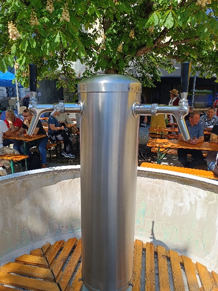 Brunnen, als Punkt 15 Uhr das kühle Nass begann, aus den Zapfhähnen