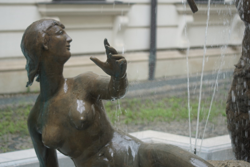 greift er nach einer erschreckten Nymphe. Das Gebäude ist das größte