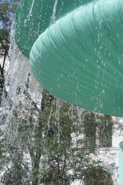 Platz, ist eine identische Anlage zu finden. Die Wasserschleier, die vom