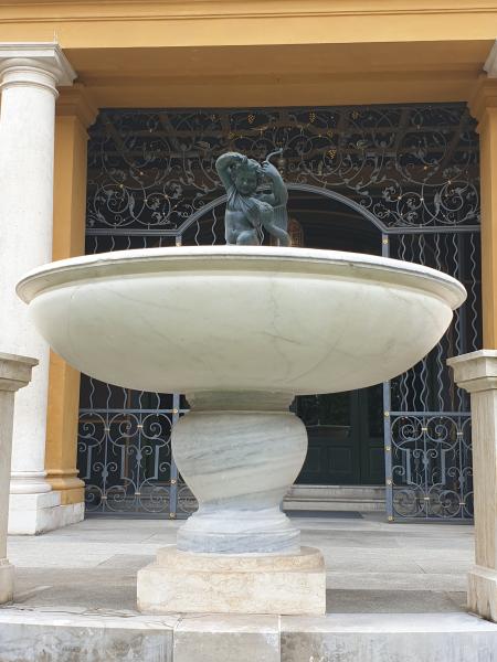 Der kleinste Brunnen im Garten des Lenbachhauses stellt den griechischen