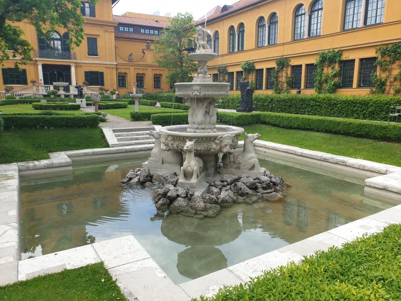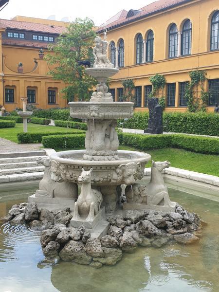 prächtige Schalenbrunnen ist einer von drei Brunnen im Hof des Lenbachpalais,