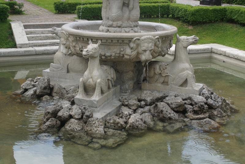 aus dem das Wasser in die mittlere Schale sprudelt. An der zweiten von