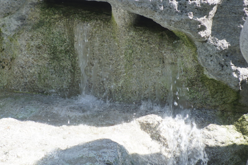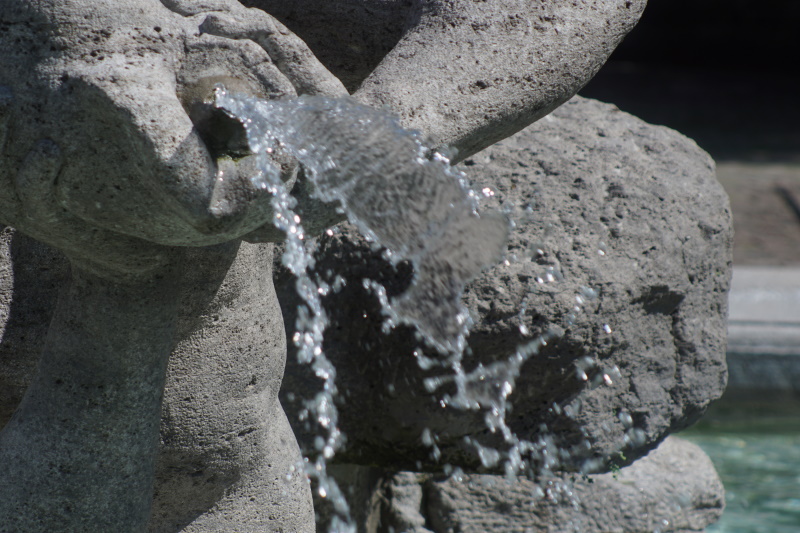 fallen mehrere dünne Strahlen aus den Muscheln in das große