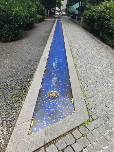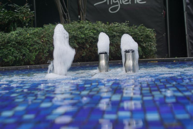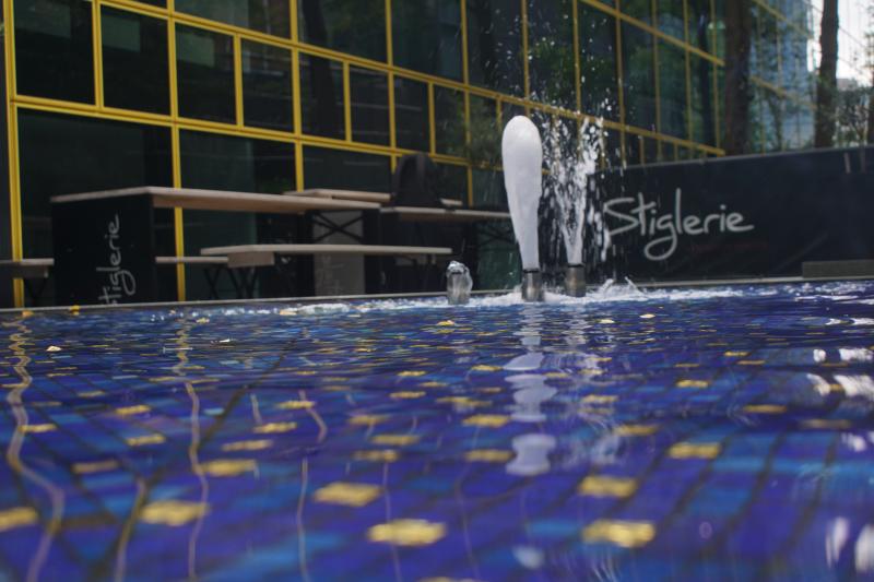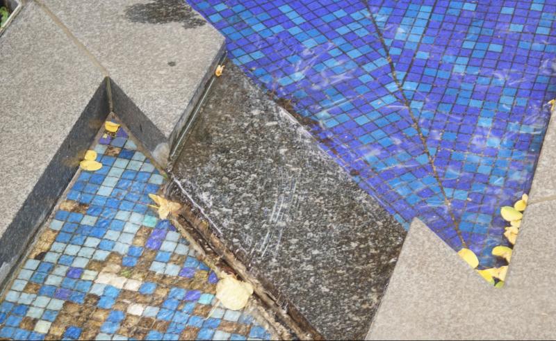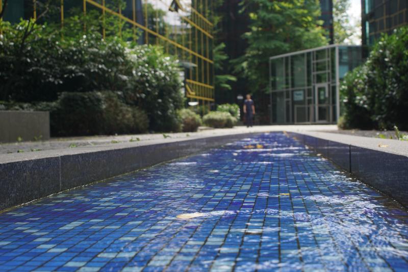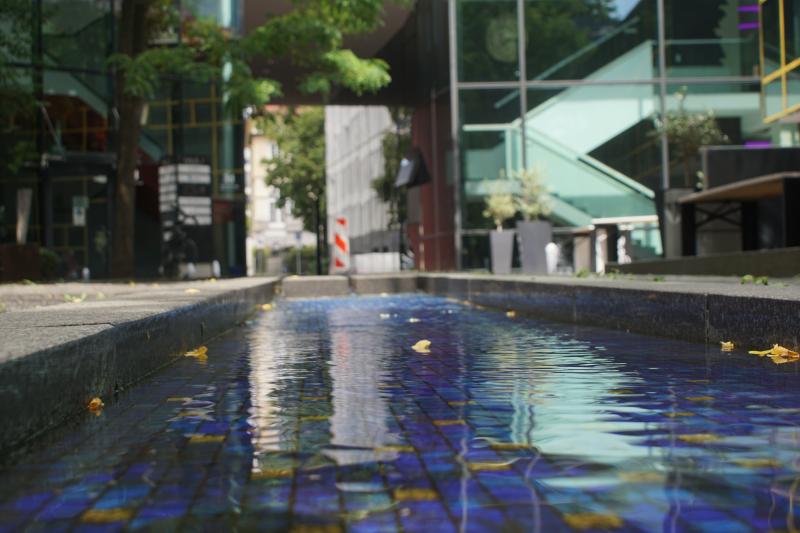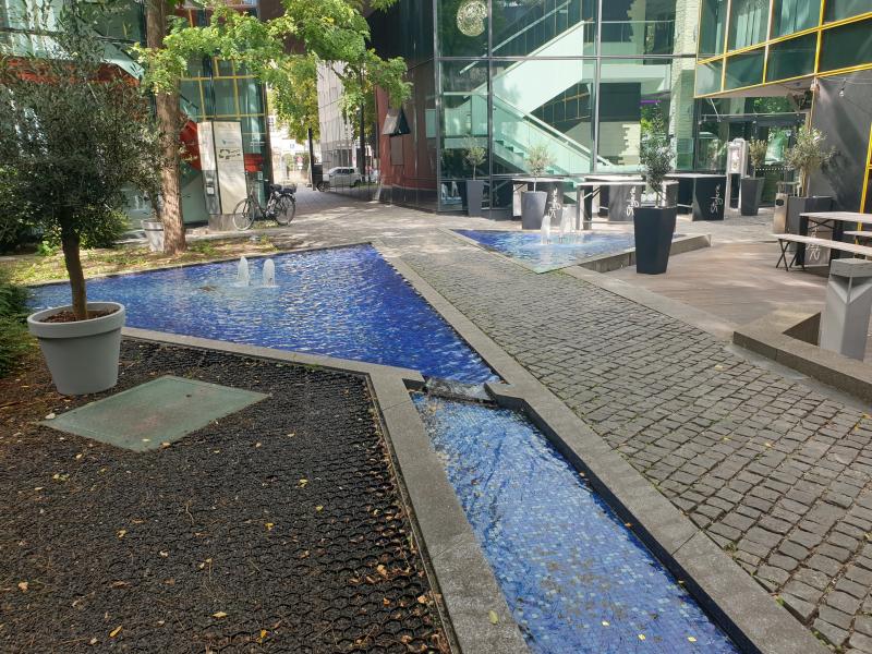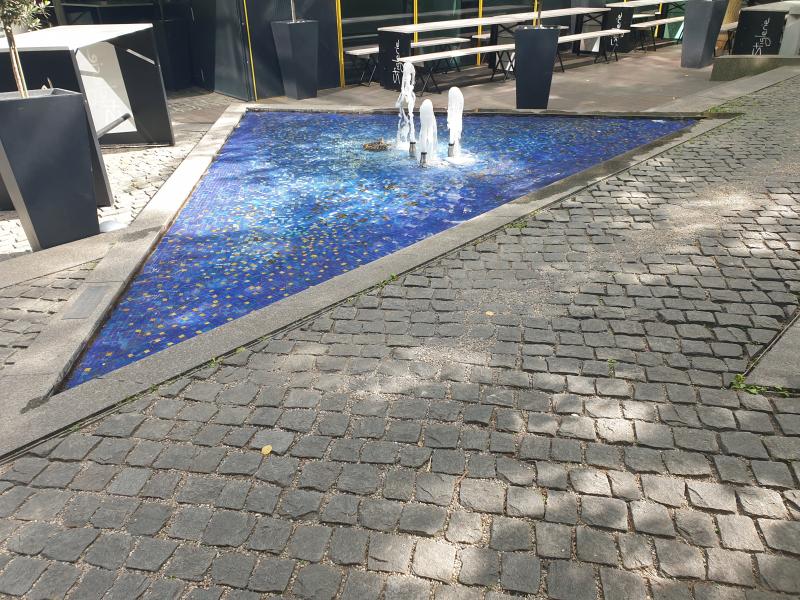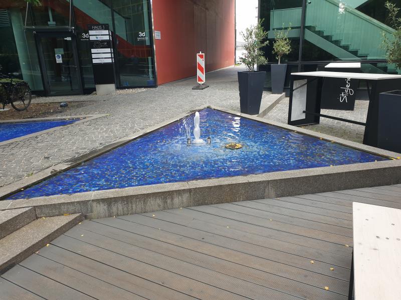 dreieckförmige Brunnenanlage (mit einem weiteren dreieckigen Becken
